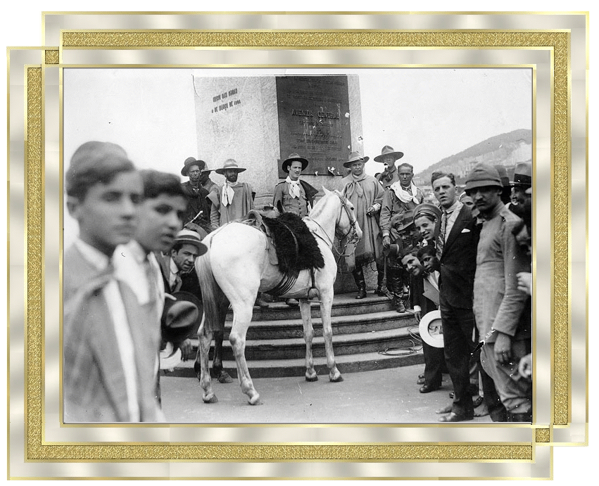 cavalarianos de Mauá e, na retaguarda, 50 senhoras e crianças, todos vestindo