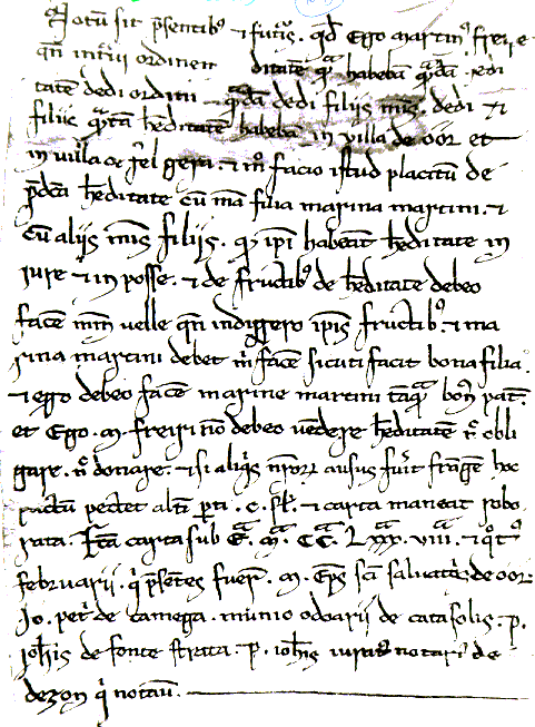 Martiño Freire, relixioso de Oseira, que no momento de entrar na relixión dividira os seus bens entre o mosteiro e os seus fillos, establece agora coa súa filla Marina Martínez o aproveitamento dos froitos da parte que deu òs seus fillos.