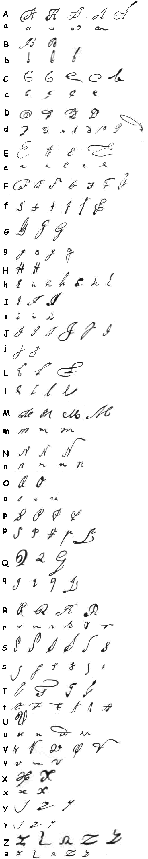 Ao pesquisar em livros antigos, é necessário ter uma noção de como você encontrará nos textos dos documentos antigos, as letras, maiúsculas e minúsculas, e as abreviações que naquela época utilizavam e que mais se parecem com desenhos ( ou melhor alguns parecem rabiscos), mas é imprescindível para que você possa entender e interpretar o que significam.